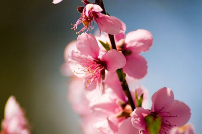 Derrick and I were out shopping today and found a peach tree. We both love the flowers on it so much that we'll be going back with the jeep and picking it up. It won't be in the girls' garden but it will be in the front yard next to their garden. It has the prettiest pink flowers on it and the thought of hopefully getting to someday walk out my front door and grab a peach, would be pretty awesome. So I found a picture of what the flowers looked like on the ones we found. Just thought I'd share this with you today.